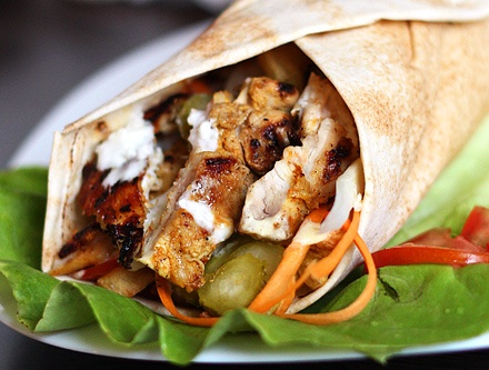 De obicei o mananc la fast food dar fara lipie si cartofi (la farfurie). Doar carnea si legumele (salata verde, varza, rosii, castraveti, porumb, etc).