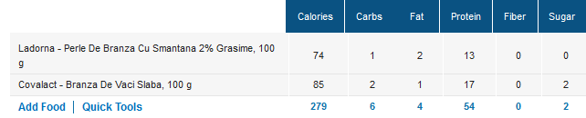 Eu mananc foarte mult piept de pui si beau mult lapte. Cam astea sunt principalele, insa le mai schimb la ceva timp.(+oua,branza,carne vita,etc)