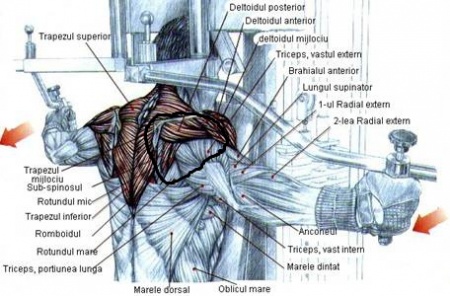 Imediat dupa antrenamentul care a agravat durerea, o simteam cand apasam puternic intre deltoidul anterior si mijlociu si se prelungea in interiorul bratului spre triceps. Inainte si dupa(f putin acum) simt o mica durere cred ca intre triceps si deltoidul posterior, undeva in interiorul bratului.