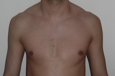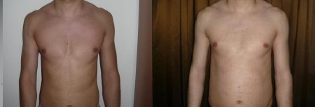 am aproape acc problema ca si tine , numai ca la mine este mult mai grav ,muschiul pieptului drept este dezvoltat doar in partea de sus de langa clavicula in timp ce partea stanga a pieptului este normala.