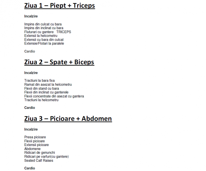Programul mi se pare cam incomplet si sunt unele exercitii in plus care inlocuiesc exercitiile de baza mentionate mai sus pentru piept si triceps!