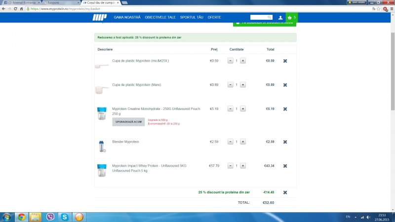 Aici e lista mea de cumparaturi . Si pretul e in Euro nu in lire. Faptul ca am 25% discount e bestial . 14 Euro economisiti calumea. si probabil o sa ma tina 1 luna jumate