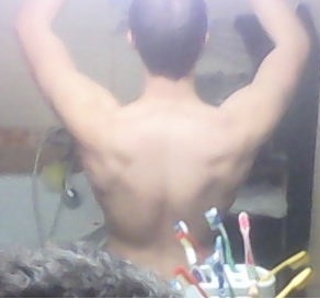 -fac spate la scripete pe fata/spate, stau rezemat cu mana pe o banca,iar cu cealalta trag de gantera, si cateva tractiuni la bara (le fac de obicei la inceput pentru incalzire)