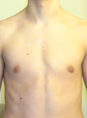 Dezvoltarea pectoralilor rezolva astfel de probleme. Cunosc mai multe cazuri. Nu trebuie sa faci nimic special. Dar ca fapt divers ... mai bine ai pune o poza cu tine nu cu altcineva. Asa ne-am da si noi seama mai bine despre ce vorbim aici.