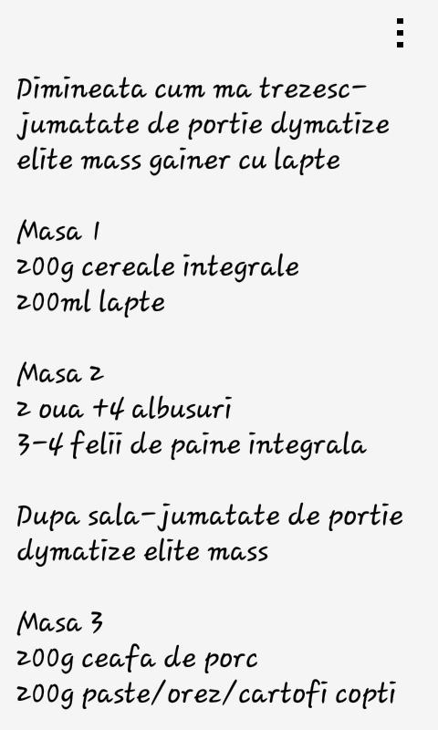 (Aici nu mai scriu antrenamentul deoarece nu stiu exact numele exercitiilor, in total fac 12 serii coapse si 8-9 serii gambe)