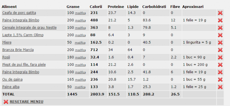 Acasa ora 6: 50g miere,o banana,200ml lapte, iar dupa 3 oua intregi cu 2 felii de paine integrala sau neagra