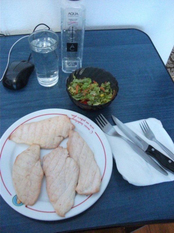 Dupa sala voi lua shake-ul proteic de la BSN combinat cu 50 ml miere si cele patru tablete de amino iar ca si cina piept de pui cu orez brun dar nu intr-o cantitate foarte mare.