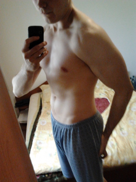 Si-acum niste poze, dupa o saptamana de pauza, facute azi dimineata (80,2kg) - am facut mai multe, dar doar astea au sub 1MB, din pacate...