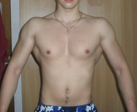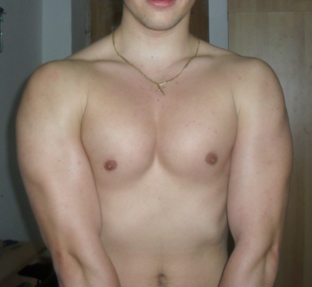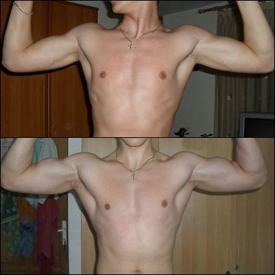 pectoralul drept e mai mic decat cel stang...insa a cam inceput sa se rezolve..nu se mai vede asa tare diferenta...o sa incerc sa ma axez mai mult pe exercitiile libere (cu gantere) pana ajung la fel...