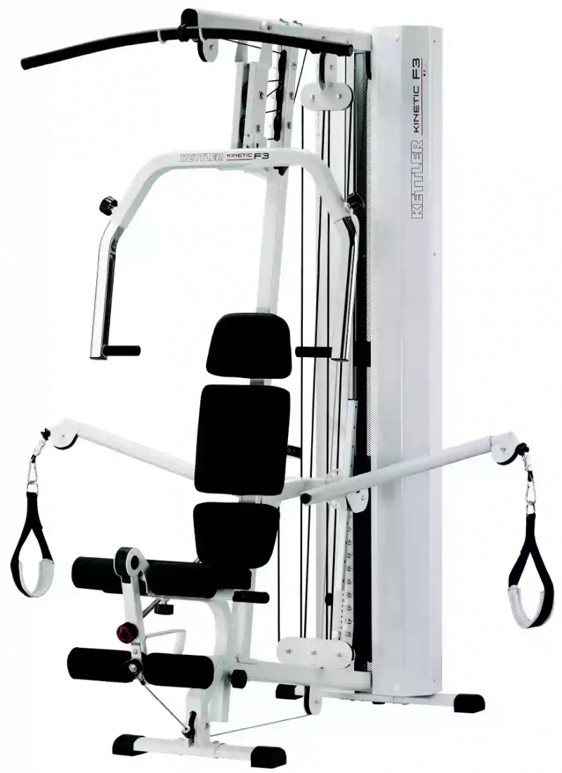 -multifunctional kettler(poza atasata), bara dreapta, bara EZ, gantere, o banca care poate fi folosita pentru impins drept si inclinat(proasta calitate dar asta e) si un "captain's chair" (nu stiu cum se numeste in romana...cel la care se pot face tractiuni cat si "leg raises"