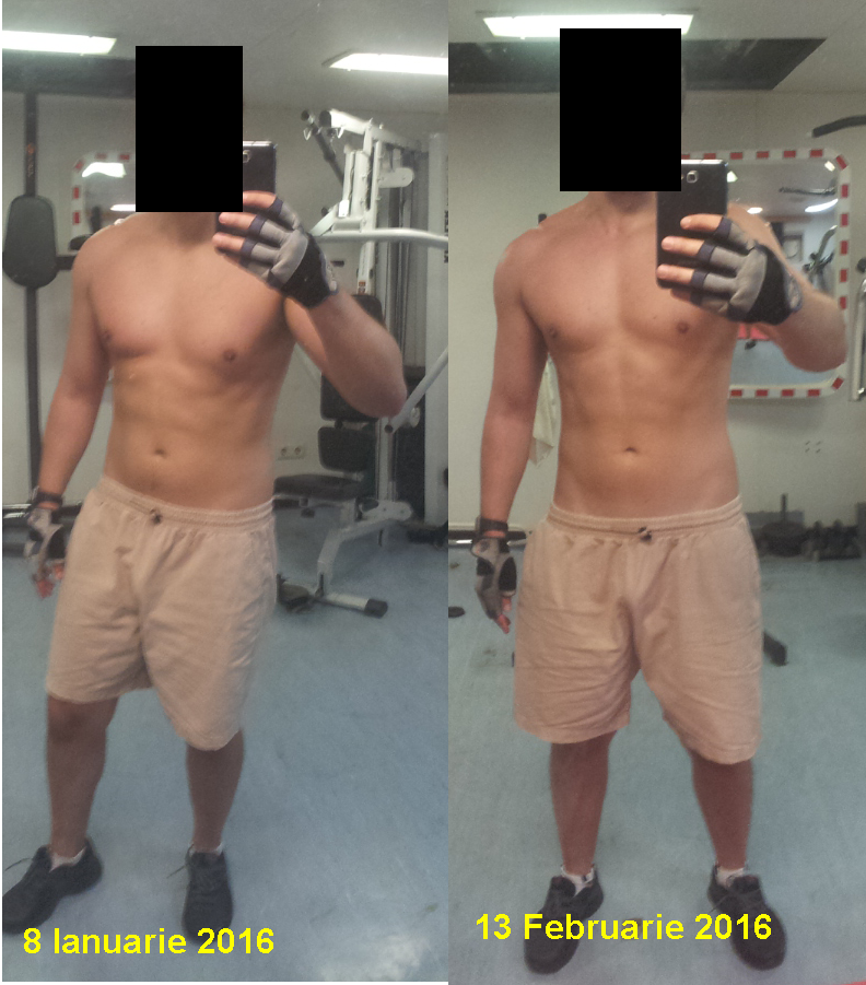 Am slabitde la 84 kg in februarie pana la vreo 82 de kg in martie fara diferente notabile in aspect(majoritatea grasimei care se dusese se dusese de pe picioare si spate). Din fata aratam cam la fel ca la 84 de kg (poza Februarie 2016)