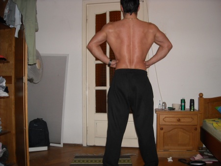 Spatele este si el alcatuit din mai multe grupe, in ziua de spate eu dau lateralii, trapezul inferior(middle back) si lombarii, trapezul superior il dau cu umerii. Pentru laterali dau 3 exercitii, cele 2 tipuri de tractiuni si ex la halcometru, pentru trapezul inferior ramat cu gantera sau cu bara, iar pentru lombari hyperextensii sau indreptari, deci in total 20-24 serii, in functie de cum simt eu in ziua respectiva. Lateralii ii lucrez mai mult pentru ca nu sunt suficient dezvoltati, trapezul inferior e ok, iar lombarii cred ca sunt ceva mai dezvoltati ca restul. Chestia cu multe sau putine serii e relativa, difera de la persoana la persoana, aproape fiecare organism este diferit, deci nu lucrati numai dupa carte, lucrati si dupa cum simtiti sau in functie de deficientele pe care le aveti Hai bafta la tras!!!