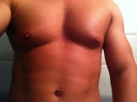 chestia este ca in poza par gras desi nu sunt, si mai este o chestie ciudata ca dupa ce ies de la dush sau ating putin pieptul isi i`a forma buna se vede frumos exact ca la culturisti, cand se relaxeaza apare ca in poza, stiu ca este normal sa fie o schimbare dar este prea mare diferenta cand este contractat si cand este relaxat, mult prea mare, si cand eram slab tare si nu faceam sala la fel era pieptul Ai un inceput de ginecomastie