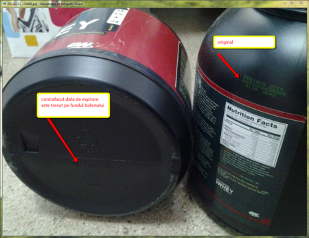 Si o rugaminte.. daca are cineva 100% whey gold standard, de ciocolata, si este dispus sa ne intalnim in Bucuresti sa comparam continutul celor doua, as aprecia foarte mult. Nu de alta, dar chiar am de gand sa fac o reclamatie la OPC ori la alta institutie avizata sa se ocupe cu astfel de cazuri.. Si daca in final se dovedeste ca e fake, o sa va spun si site-ul sa stiti sa va feriti.