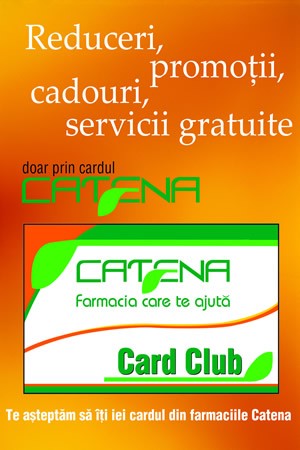 In plus puteti deveni membrii clubului Catena si detinatori de card Catena pentru a beneficia lunar de reduceri, oferte speciale si premii surpriza.